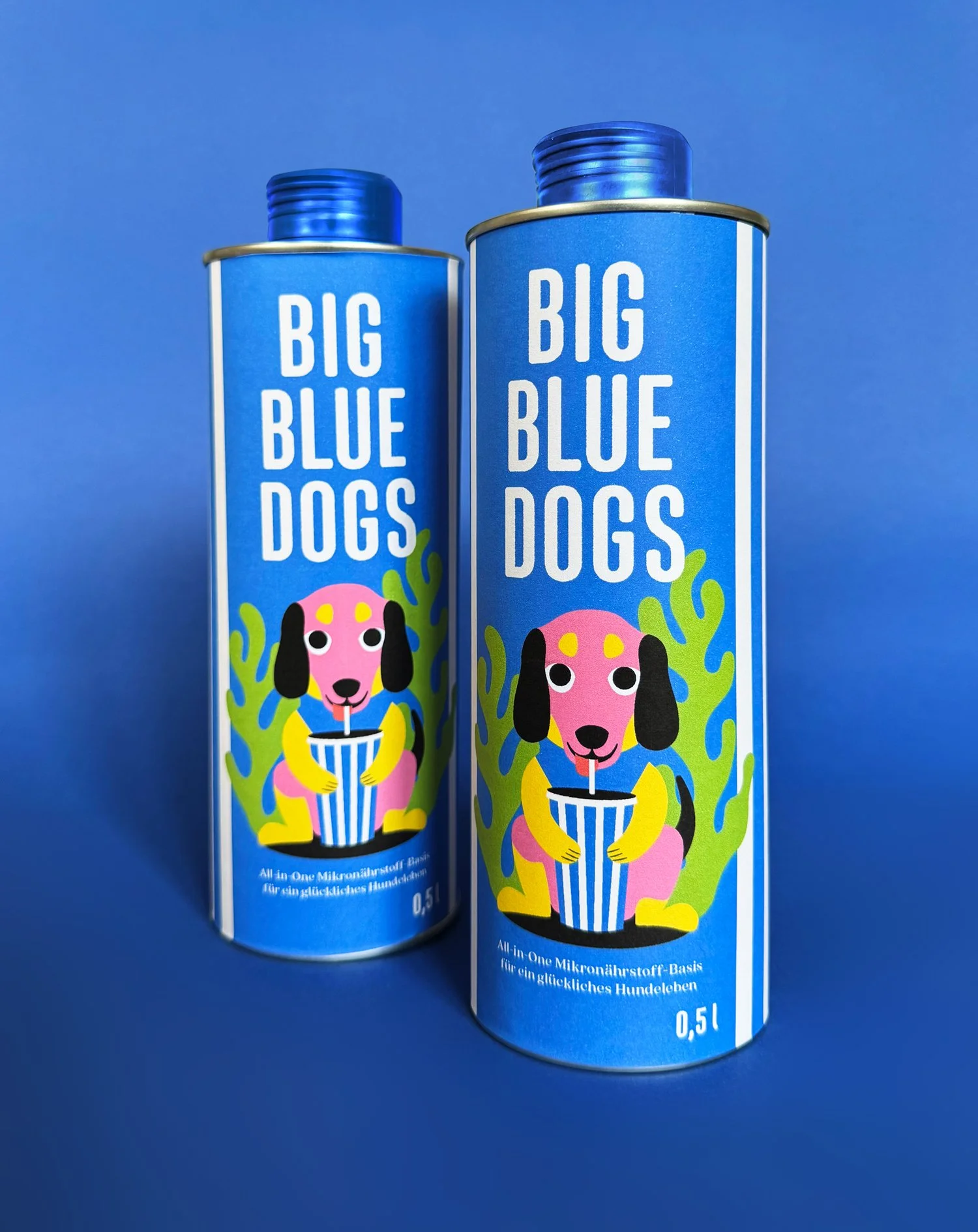 Branding project for BIG BLUE DOGS, a new swiss brand for food supplements made from algae.